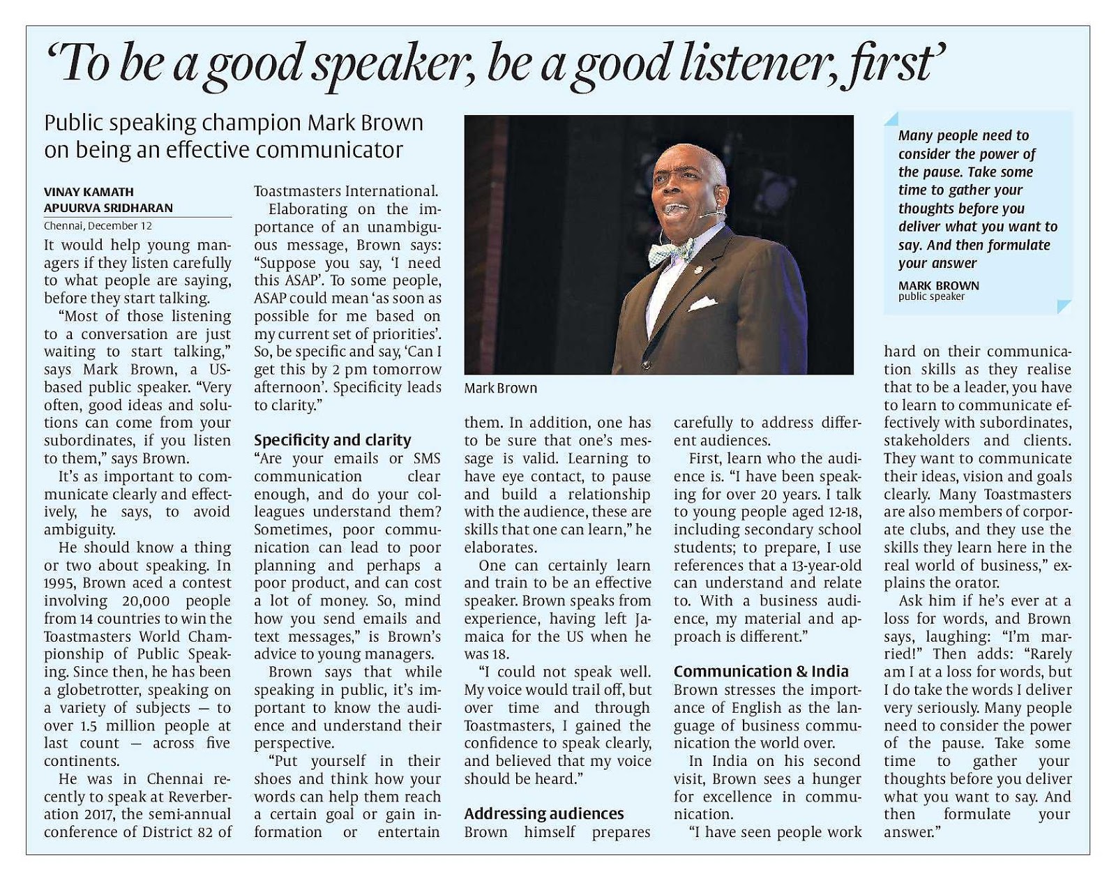 Sandesh - To be a good speaker, be a to be a good speaker be a good listener first