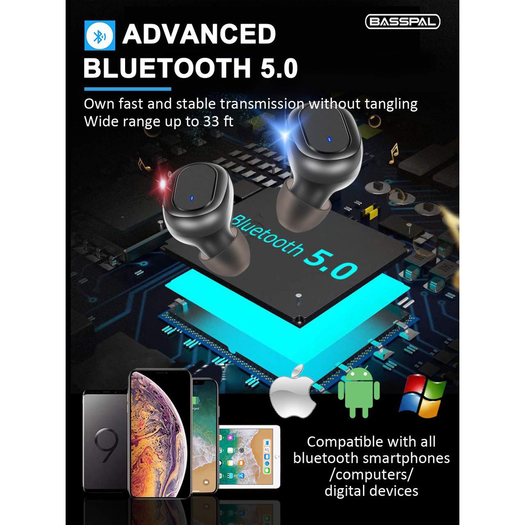 Basspal Wireless Earphones, Bluetooth 5 basspal pairing