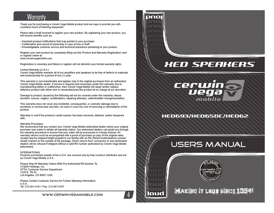 CERWIN-VEGA XED693 USER MANUAL Pdf xed693