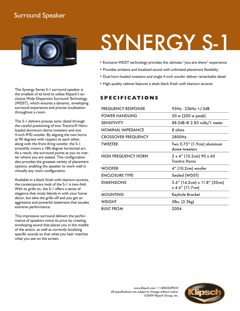S1 Sheet.indd | Manualzz klipsch synergy s1