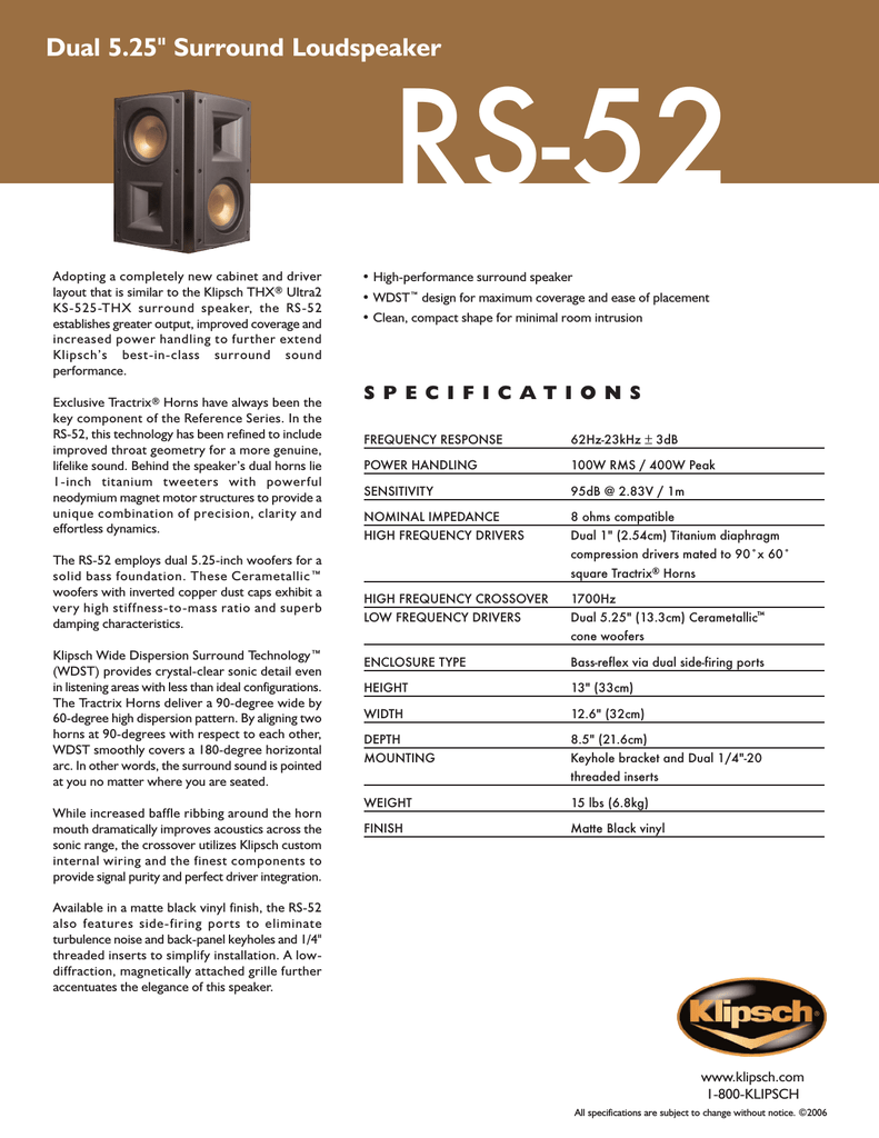 Klipsch RS-52 | Manualzz
