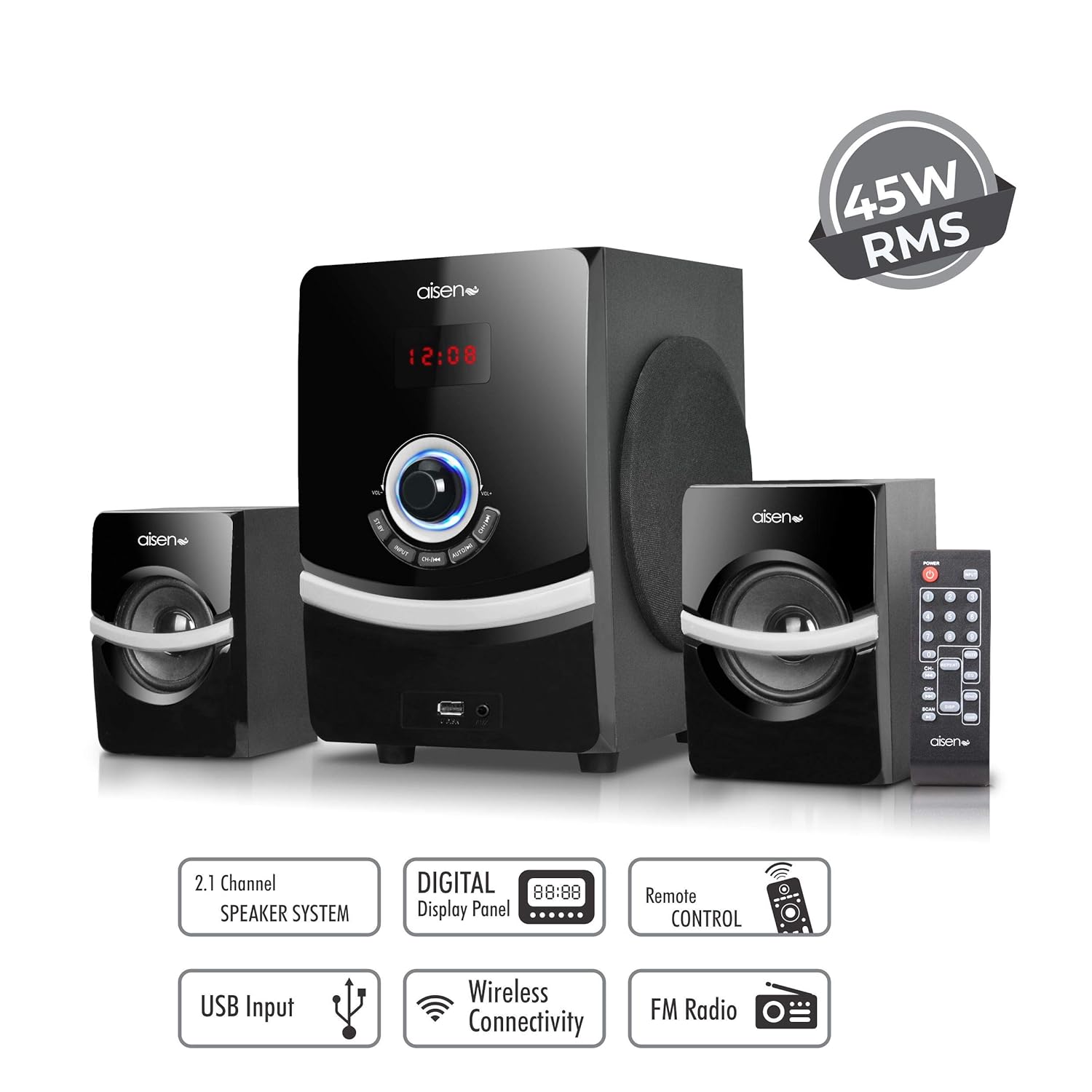 45W RMS 2.1 Channel Multimedia Speaker aisen 2.1 home theater