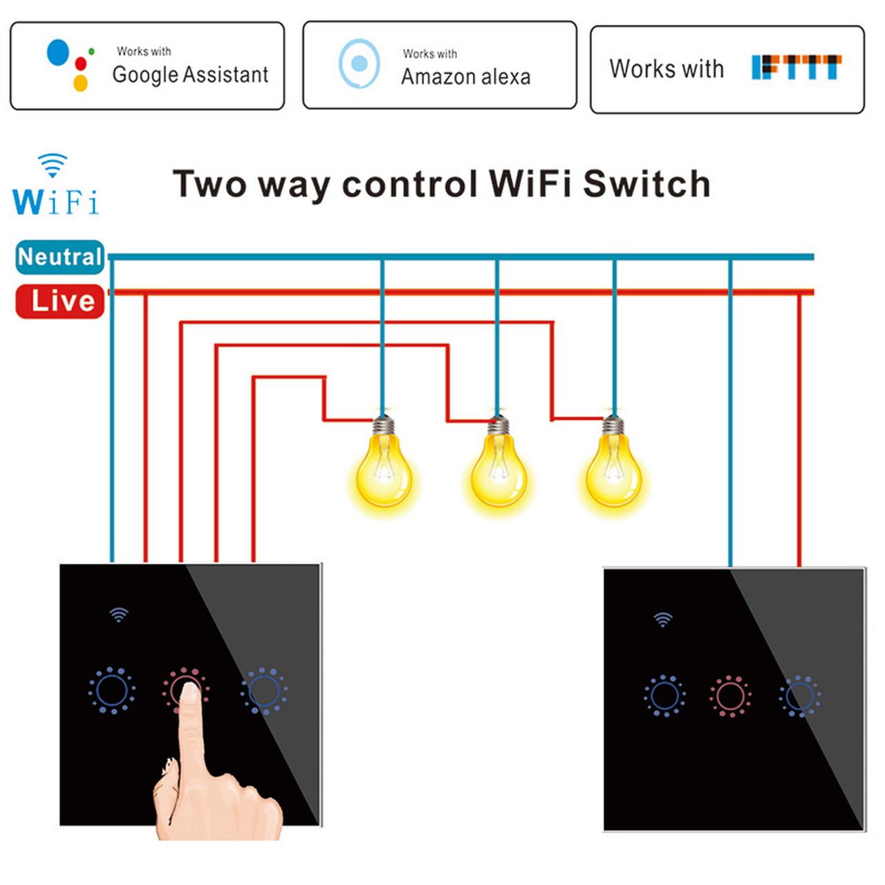 Two Gang Fire Proof Wi-Fi Light Switch google assistant light switch uk