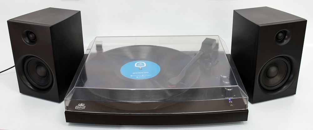 gpo piccadilly matte black turntable with speakers