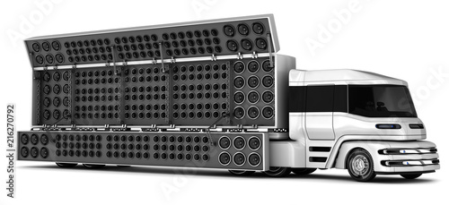 Freight truck wall of subwoofers. 3d wall of subwoofers