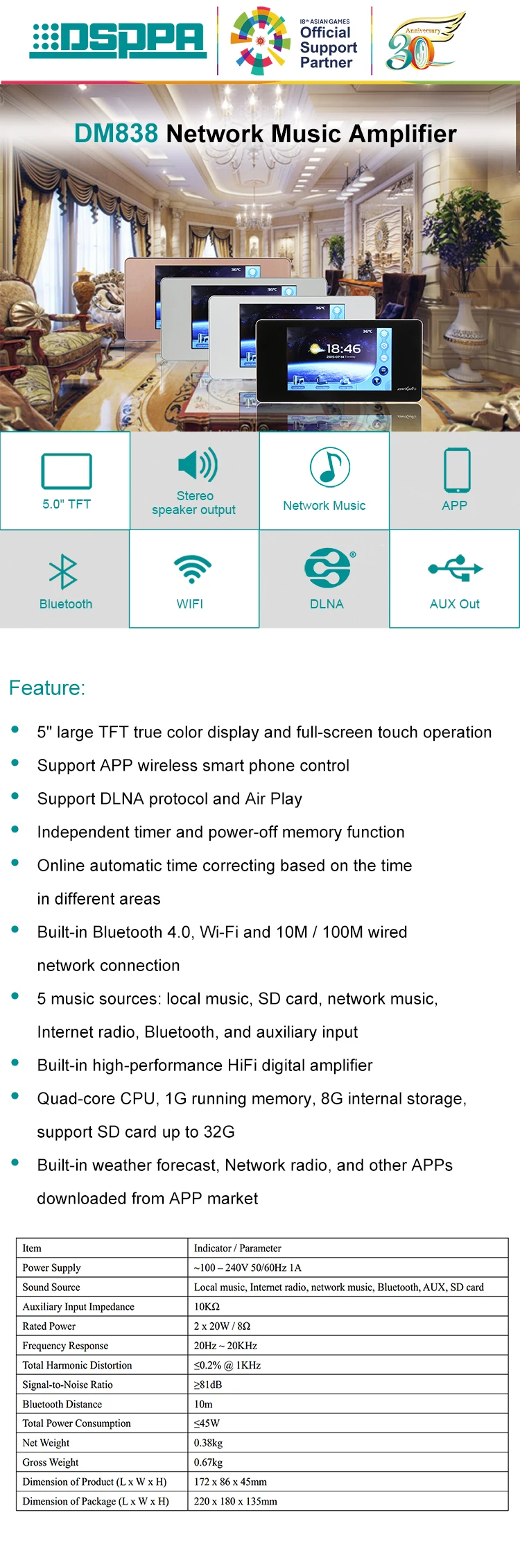 DSPPA DM838 Home Central Audio System central music system