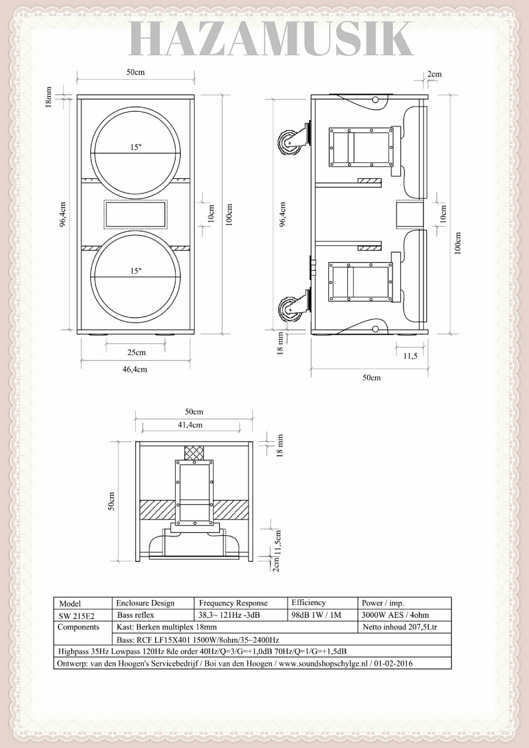 skema ukuran box speaker