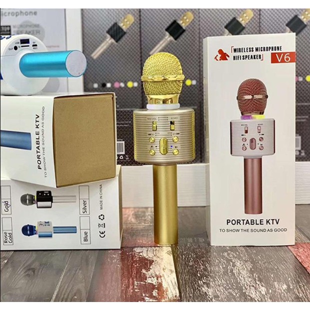 V6 Bluetooth Microphone Speaker Karaoke wireless microphone hifi speaker v6