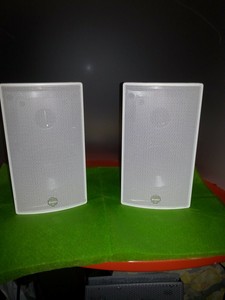 white satellite speakers