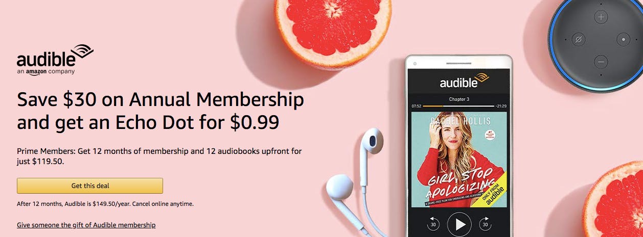 Amazon Audible and Receive an Echo Dot audible echo dot promo